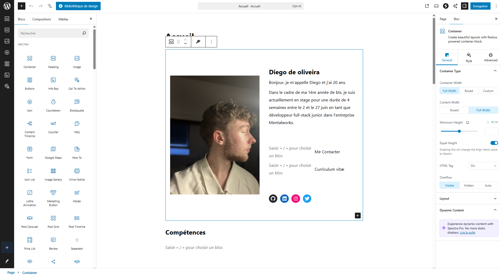 Réalisation de mon portfolio en wordpress