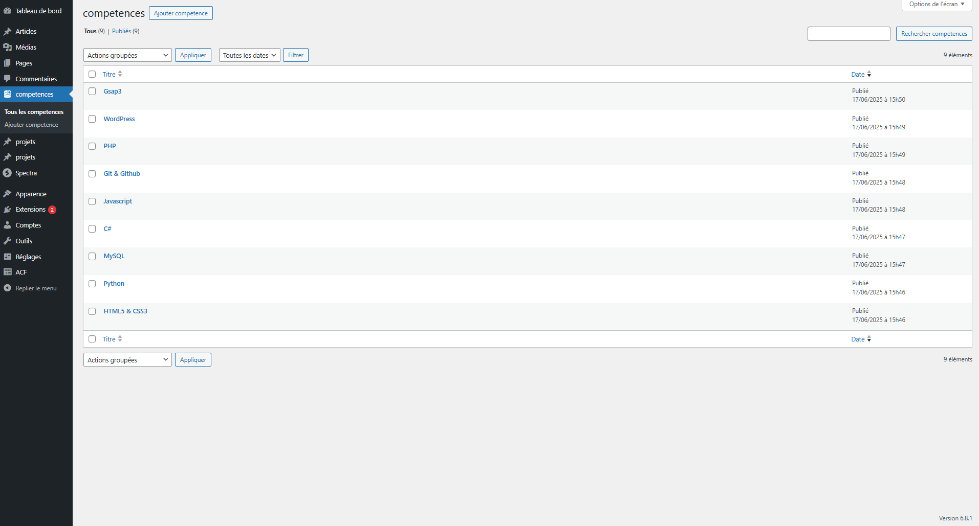 Ce portfolio a été développé en utilisant Timber et Twig, des custom post types ainsi que des champs ACF.